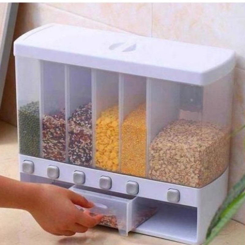 نظم مطبخك مع موزع الحبوب الأنيق المثبت على الحائط والذي يحتوي على خمسة حجرات للوصول السهل إلى حبوبك المفضلة.