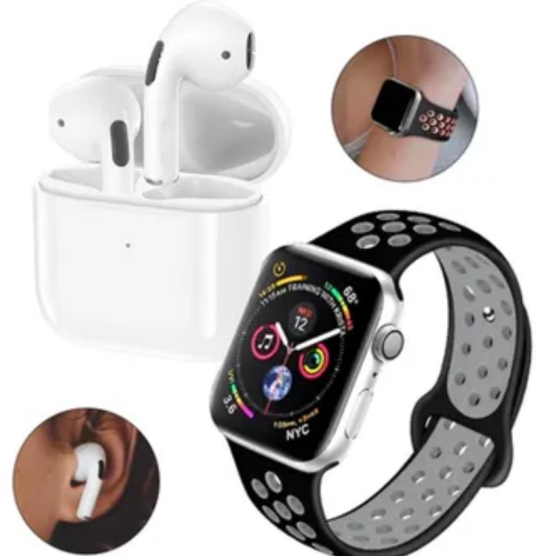 قم بترقية تقنيتك مع هذه المجموعة الأنيقة من الساعة الذكية وسماعات الأذن اللاسلكية. مثالية للبقاء على اتصال والاستمتاع بأغانيك المفضلة أثناء التنقل.