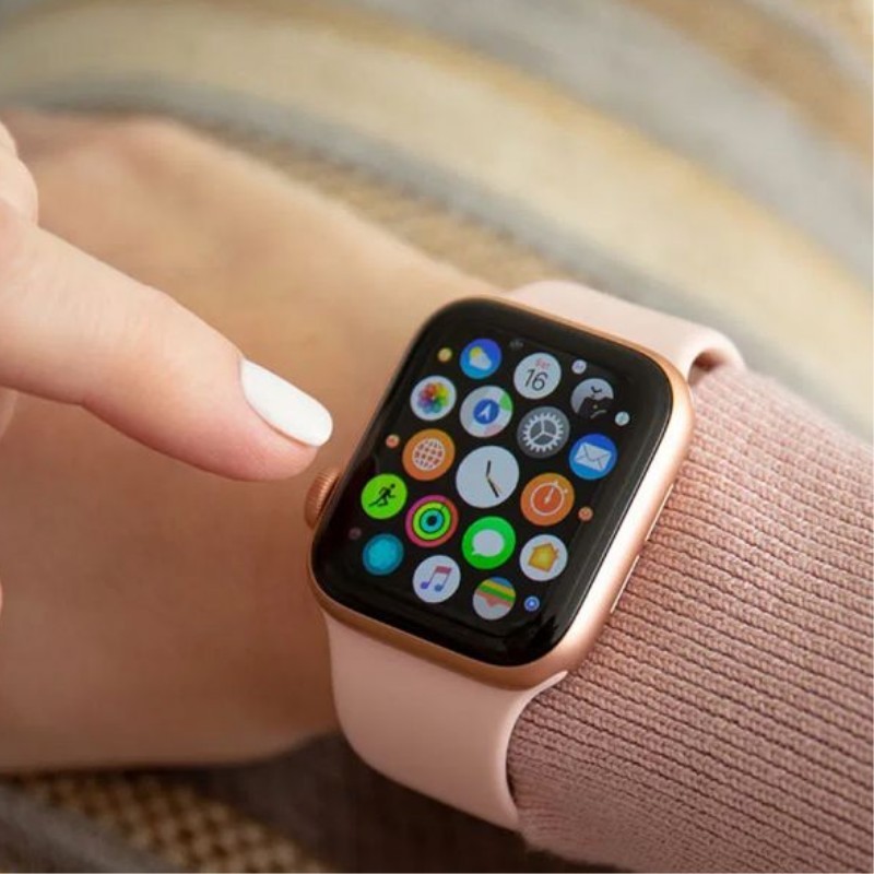ساعة ذكية أنيقة وعصرية بتشطيب وردي ذهبي، مثالية لتتبع لياقتك والبقاء متصلاً أثناء التنقل.