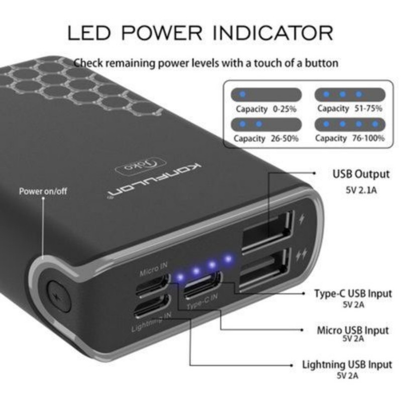 بنك طاقة مدمج وفعال بسعة 10000 مللي أمبير مع منفذي USB مزدوجين.