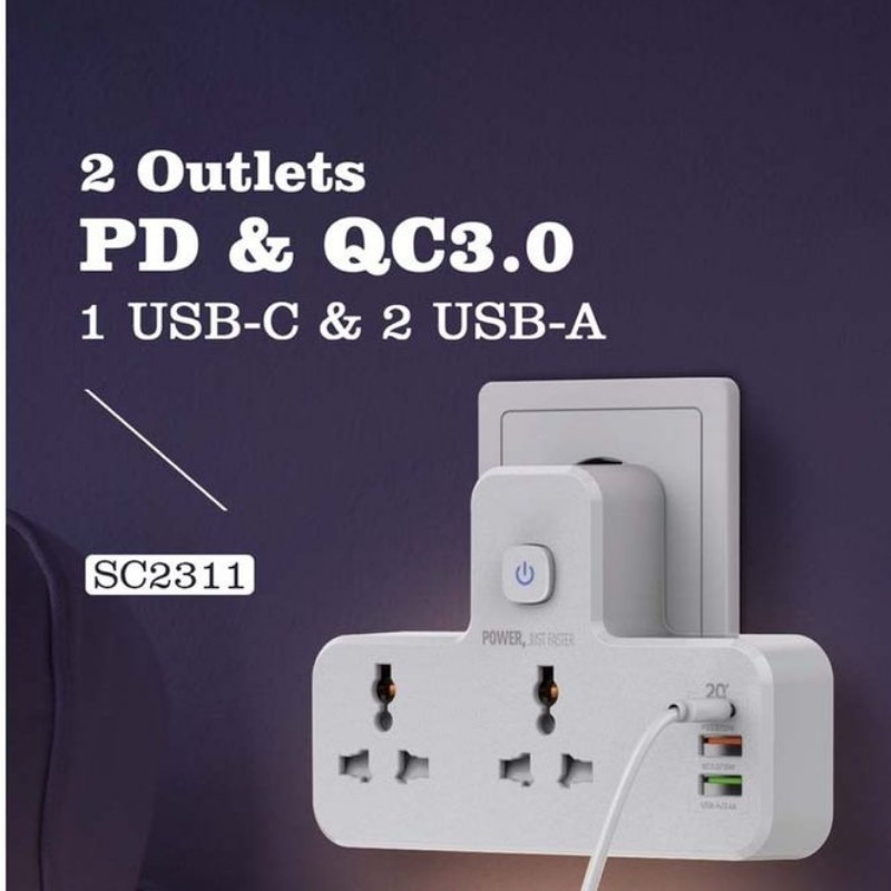 موزع الطاقة SC2311 مع مخرجين وفتحات USB