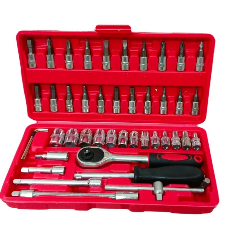 مجموعة مفاتيح ربط شاملة مكونة من 46 قطعة مثالية لعشاق DIY والمحترفين على حد سواء. مثالية للحرف اليدوية والإصلاحات والمهام المنزلية العامة.