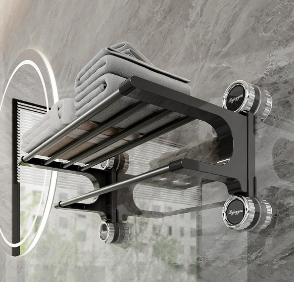 حامل مناشف مثبت على الحائط متين وأنيق، مثالي لأي حمام.