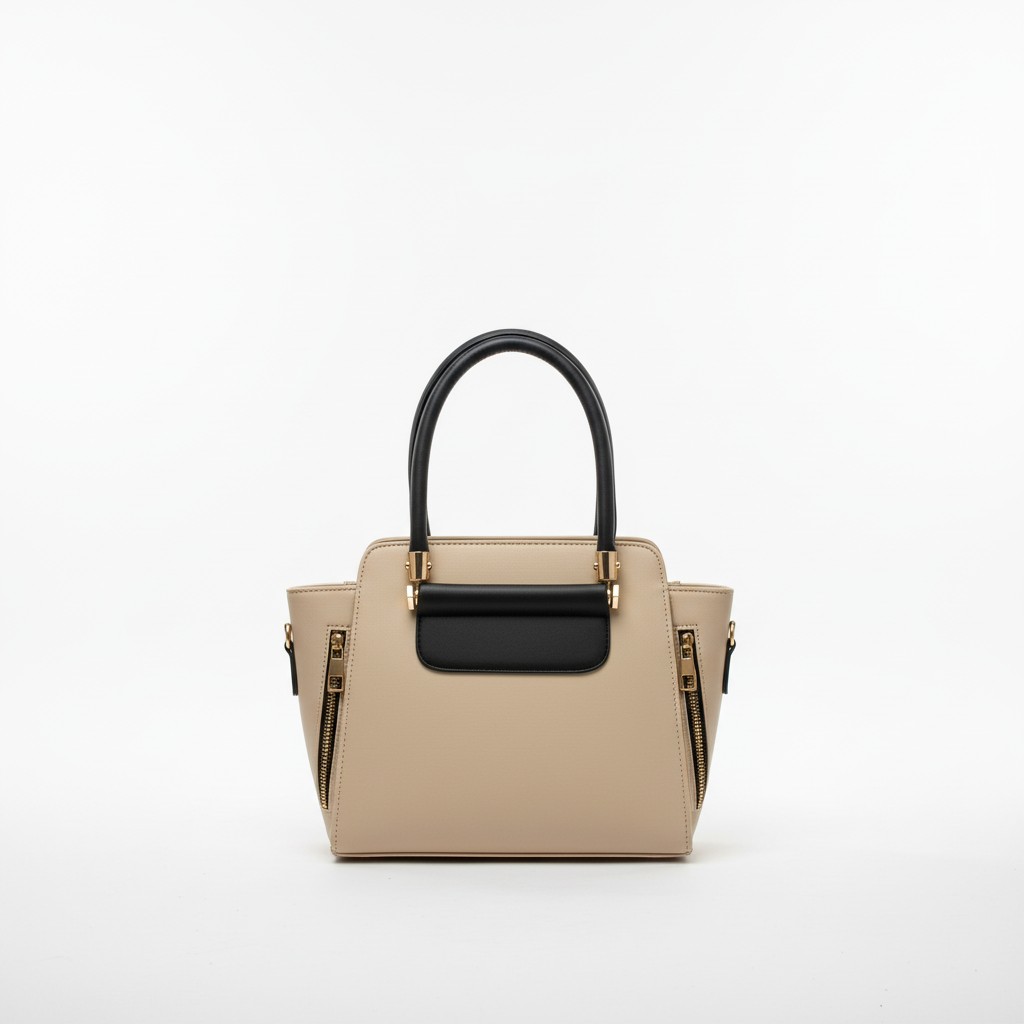 تجمع هذه الحقيبة الأنيقة بين التصميم الكلاسيكي واللمسة العصرية، حيث تتميز بواجهة جلدية رائعة ذات لونين تكمل أي زي بكل سهولة. توفر المساحة الداخلية الواسعة مكانًا كافيًا لجميع احتياجاتك، بينما تضمن المقابض العلوية المتينة حملًا مريحًا. تضيف الأجزاء المعدنية بلون الذهب لمسة من الفخامة، مما يجعل هذه الحقيبة إكسسوارًا متعدد الاستخدامات لكل من النهار والليل. مثالية للأشخاص المولعين بالموضة الذين يبحثون عن كل من الوظائف والأناقة.