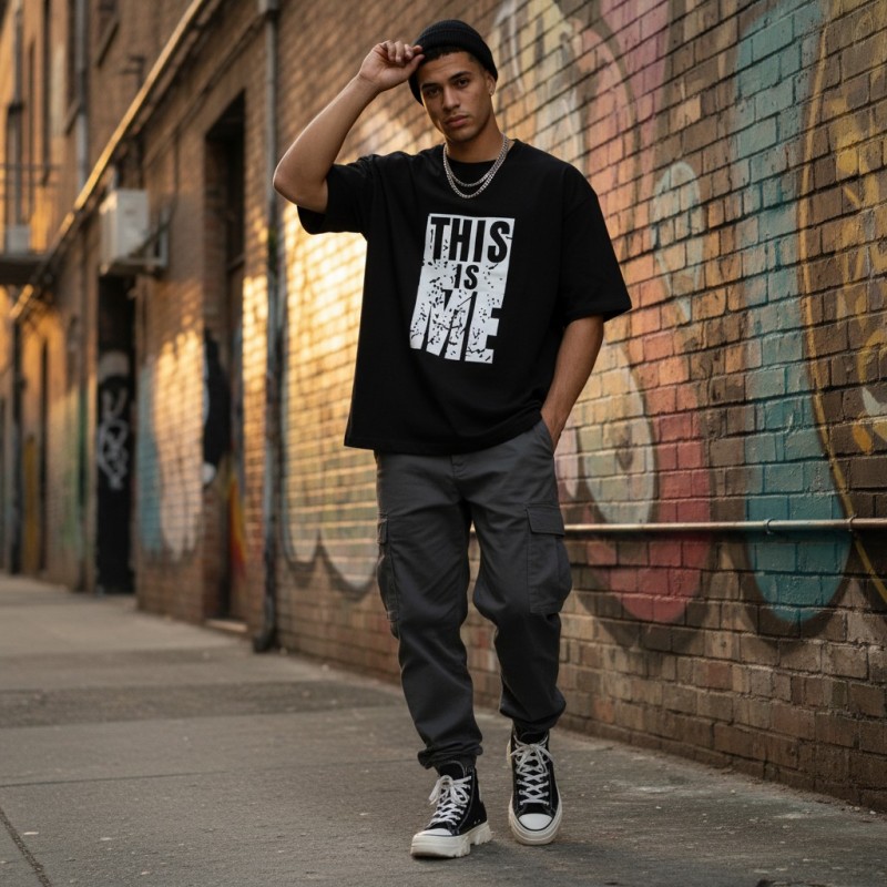 يتميز هذا التي شيرت الجرافيكي الحضري بتصميم جريء وجذاب، مما يجعله عنصرًا أساسيًا للأشخاص الذين يهتمون بالموضة. مصنوع من قطن عالي الجودة، يضمن الراحة والمتانة. مثالي للتنسيق مع الجينز أو السراويل القابلة للتعديل للحصول على مظهر مريح وعصري.