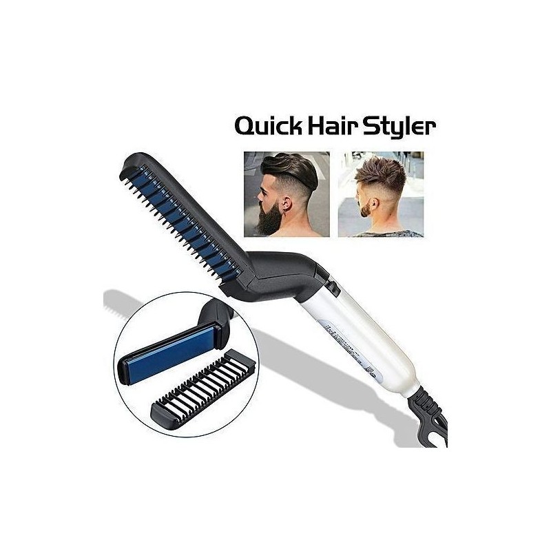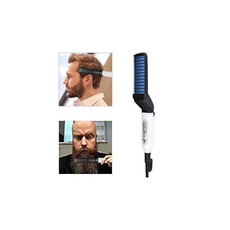 Achieve a polished look with this electric straightener comb, perfect for taming both hair and beard. Ideal for quick grooming on the go.