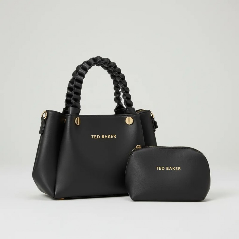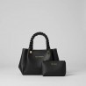 This elegant handbag set includes a stylish black handbag, a matching purse, and a compact pouch. Crafted from high-quality materials, this set is designed for both functionality and style, making it a perfect choice for everyday use or special occasions.