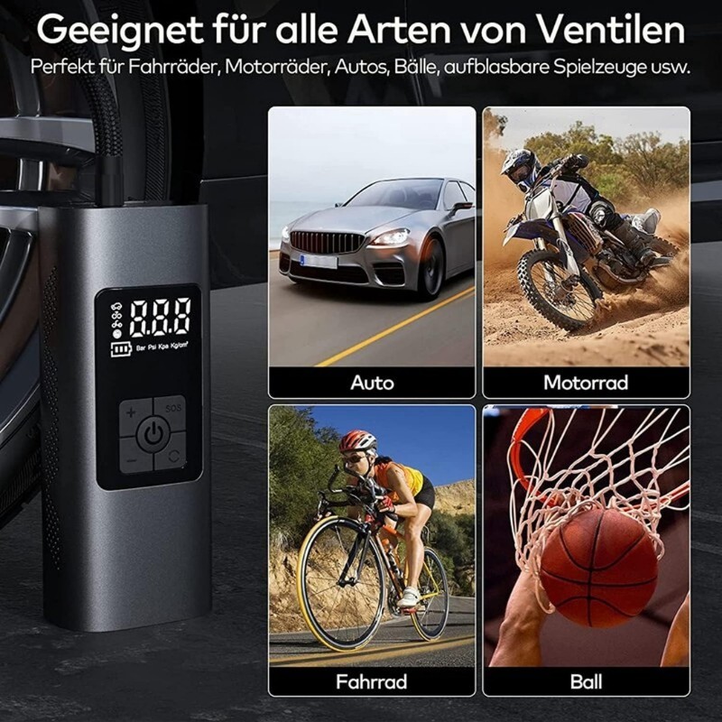 This Universal Portable Air Compressor is the ultimate tool for all your inflation needs. Designed to be compact yet powerful, it effortlessly inflates car tires, motorcycle tires, bicycle tires, and even sports balls and inflatable toys. Its digital display offers precise pressure readings, ensuring optimal inflation every time. Lightweight and easy to store, it's a must-have accessory for road trips, cycling adventures, and everyday use.