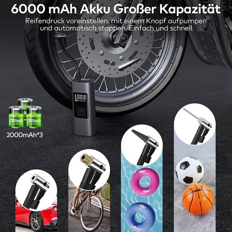 Compact and efficient air compressor suitable for cars, motorcycles, bicycles, and inflatables. Perfect for on-the-go inflation needs.
