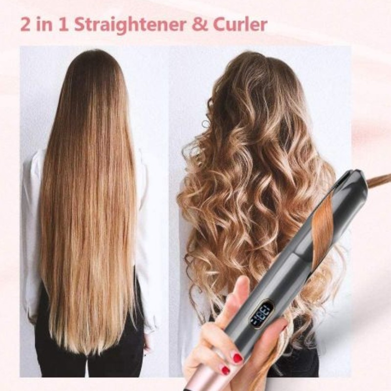 Achieve salon-quality styling with this versatile 2-in-1 hair tool, perfect for both curling and straightening.