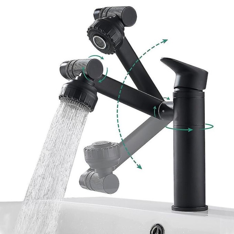 This 360° rotatable matte black bathroom faucet combines contemporary design with practical functionality. Its full range of motion allows for convenient use, whether you're washing your face or cleaning the basin. Crafted from high-quality materials, this faucet offers durability and a long-lasting finish. The matte black finish adds a touch of elegance and sophistication to any bathroom decor.