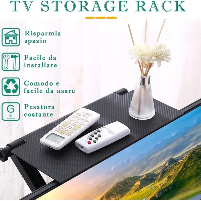 Transform the top of your TV into a functional storage area with this stylish and sturdy adjustable TV storage rack. Designed to be easily installed without tools, it provides a stable platform for remotes, small plants, or decorative items. The sleek carbon fiber finish complements any modern decor, while its space-saving design helps you keep your living area tidy and organized. Enjoy the convenience and efficiency of this versatile storage solution.