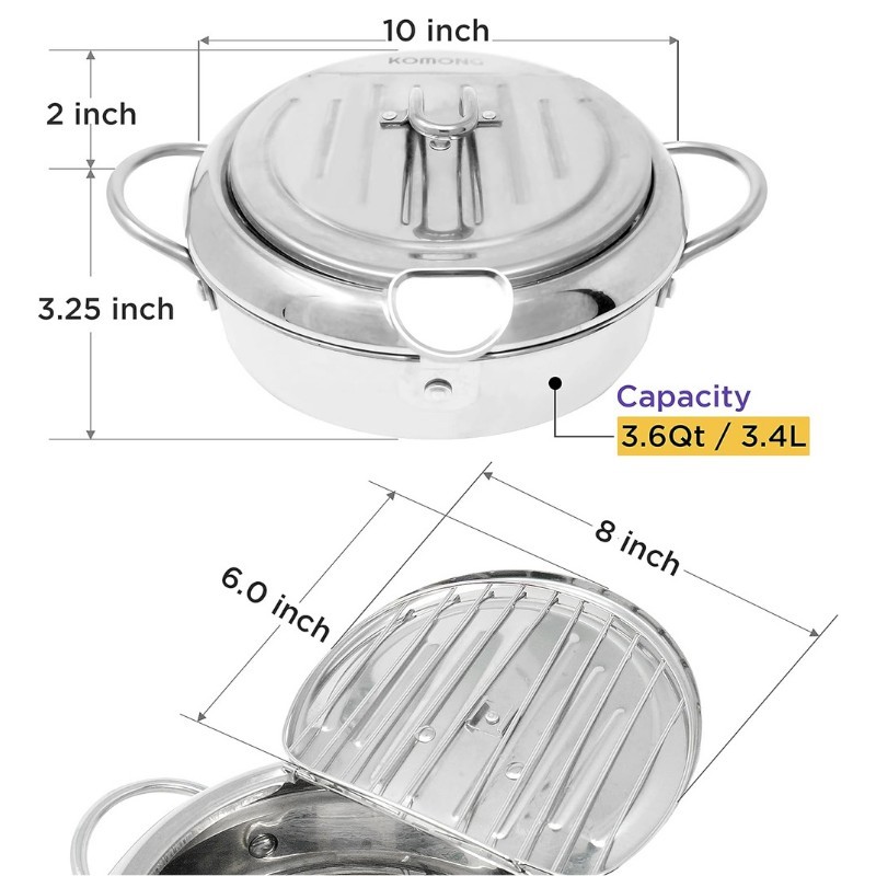 Kitchen Deep Frying Pot with Thermometre Tempura Fryer Pan Fried Chicken Pot Japanese Deep Frying