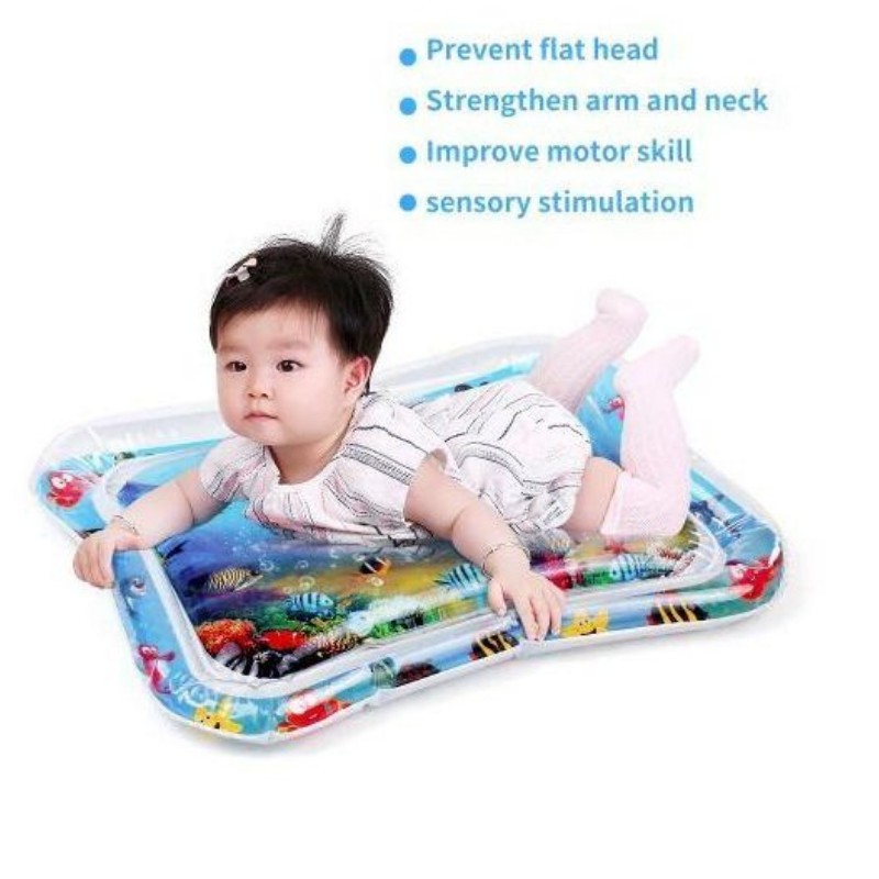 The Baby Inflatable Water Play Mat is the perfect tool to stimulate your baby's development. Filled with vibrant marine-themed graphics, this soft and durable mat offers a safe and captivating space for your child to explore. Watch as your baby strengthens their muscles and improves hand-eye coordination while enjoying the delightful underwater world. Easy to set up and portable, it's perfect for both indoor and outdoor play.