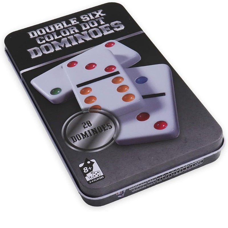 The Double Six Color Dot Dominoes set is designed for exciting gameplay and hours of entertainment. This set includes 28 colorful dominoes, each featuring vibrant dots that make the game easy to play and visually appealing. Ideal for both beginners and seasoned players, this set comes in a sturdy tin box for convenient storage and transport. Whether you're hosting a game night or looking for the perfect gift, this dominoes set is sure to impress.