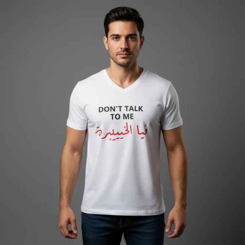 Step up your fashion game with this eye-catching 'Don't Talk To Me' T-shirt. Crafted from premium cotton, it offers both comfort and style. The bold bilingual text adds a unique flair, perfect for those who love to stand out. Whether you're dressing casually or adding a layer of personality to your outfit, this T-shirt is a must-have addition to your wardrobe.