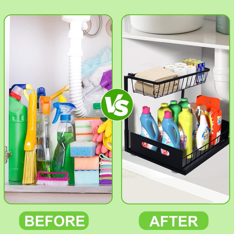 Transform your kitchen or bathroom storage with this efficient under-sink organizer. Designed with two spacious sliding baskets, it offers a smart solution for storing cleaning supplies, toiletries, or kitchen essentials. The sturdy metal construction ensures durability, while the modern design complements any decor. Easy to install and adjust, this organizer makes accessing your items a breeze, keeping your space tidy and clutter-free.