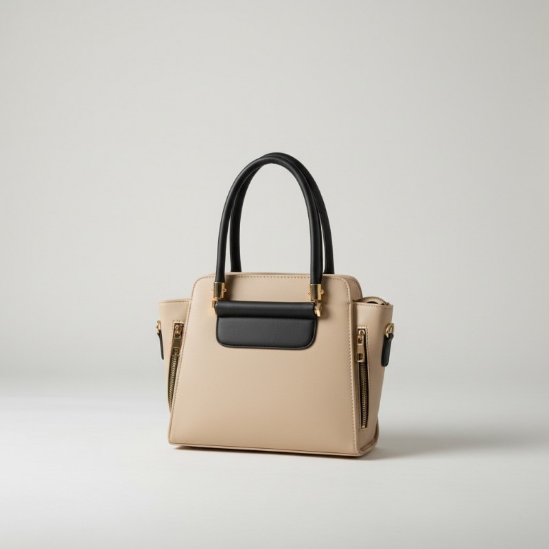 Élevez votre style avec ce sac à main en cuir bicolore sophistiqué, parfait pour toutes les occasions.