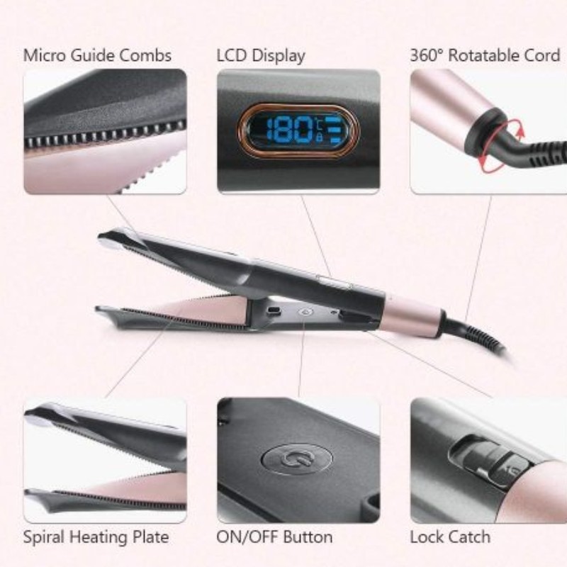 Obtenez un coiffage de qualité salon avec cet outil capillaire polyvalent 2-en-1, parfait pour boucler et lisser.