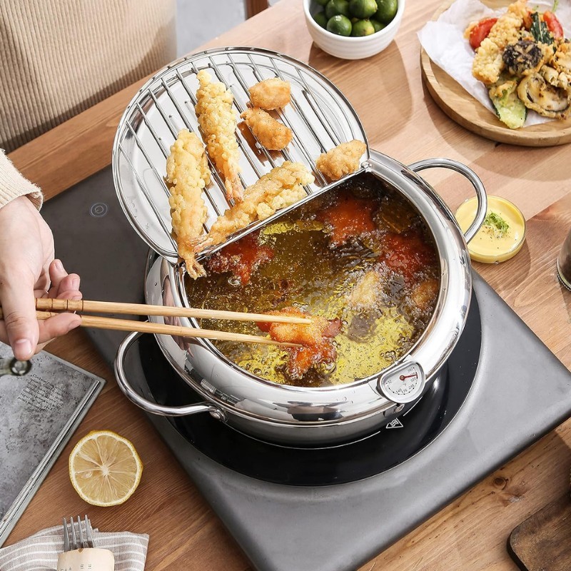 Kitchen Deep Frying Pot with Thermometre Tempura Fryer Pan Fried Chicken Pot Japanese Deep Frying