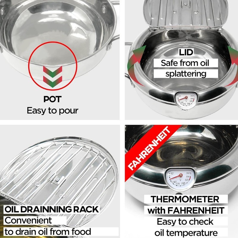 Casserole à Friture en Acier Inoxydable avec Thermomètre
