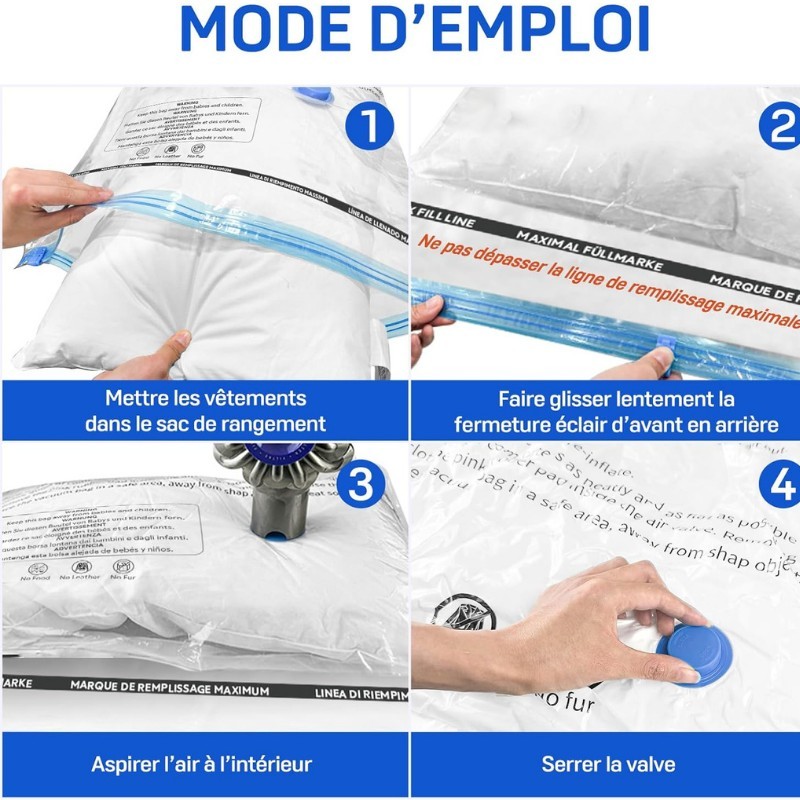 Sac de rangement sous vide efficace pour économiser de l'espace et organiser la literie et les vêtements.