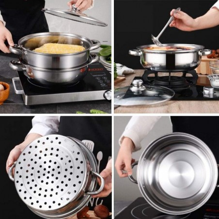Ensemble de Casseroles Vapeur en Acier Inoxydable