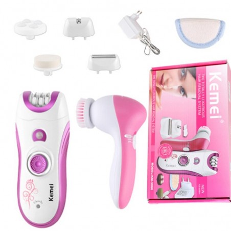 Système d'épilation et de nettoyage facial 5-en-1 Kemei