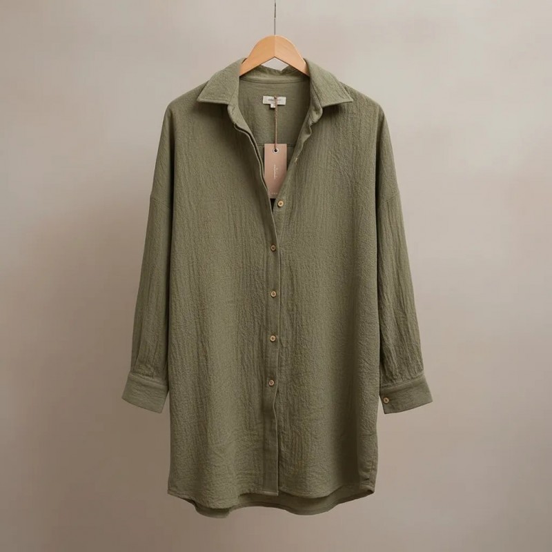 Chemise Décontractée Vert Olive à Boutons